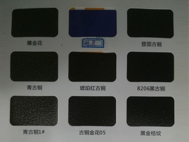 塑粉色卡是我公司主要生產(chǎn)的產(chǎn)品之一。產(chǎn)品具有**的流平性、附著力強(qiáng)、耐高溫、高光澤、美術(shù)立體感強(qiáng)等特點(diǎn)。主要產(chǎn)品有純聚酯型、純環(huán)氧型、混合型、金屬型、美術(shù)型等系列的高光、啞光、無光、磨砂、錘紋、大理石紋、仿銅系列、仿金屬漆系列等三十多個類型上千個色別的粉末涂料。